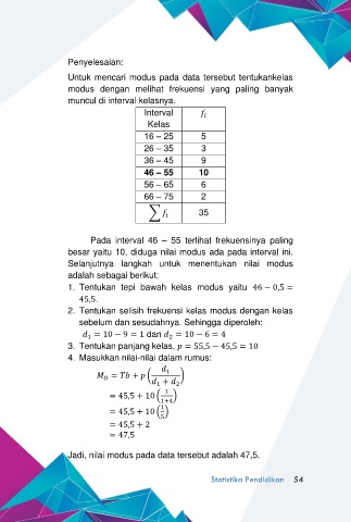 Jadi, nilai modus pada data tersebut adalah 47,5.