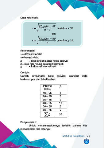 Carilah  simpangan  baku       (deviasi  standar)  data