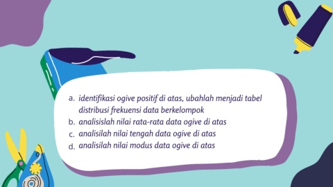 a. identifikasi ogive positif di atas, ubahlah menjadi tabel