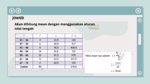 Akan dihitung mean dengan menggunakan aturan nilai tengah