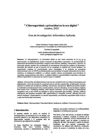 Palabras Claves. Ciberseguridad, Privacidad Digital, Inteligencia Artificial, Protección de Datos.