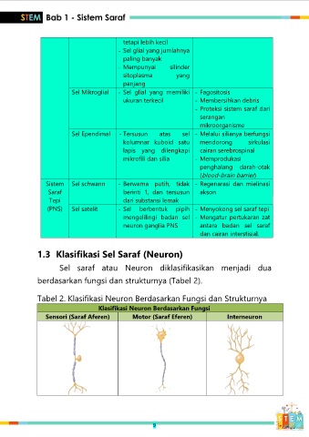 Tabel 2. Klasifikasi Neuron Berdasarkan Fungsi dan Strukturnya