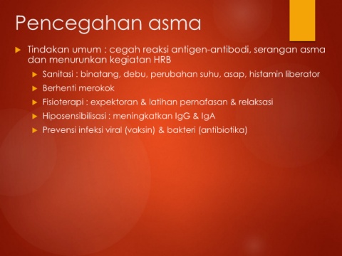Tindakan umum : cegah reaksi antigen-antibodi, serangan asma