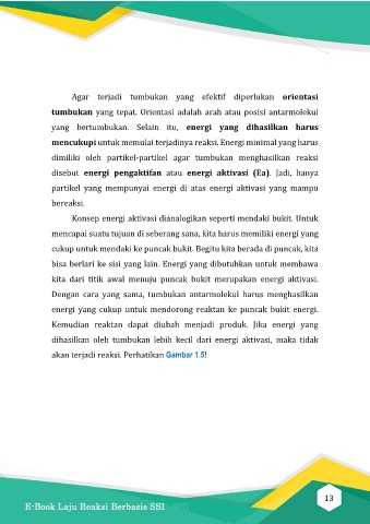 energi yang cukup untuk mendorong reaktan ke puncak bukit energi.