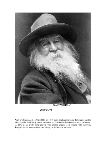 Walt Whitman nació en West Hills en 1819, es un poeta proveniente de Estados Unidos
