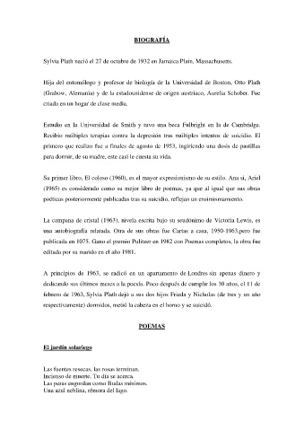 Hija del entomólogo y profesor de biología de la Universidad de Boston, Otto Plath