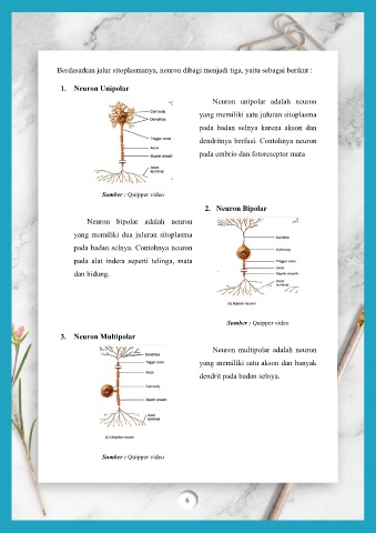 Berdasarkan jalur sitoplasmanya, neuron dibagi menjadi tiga, yaitu sebagai berikut :
