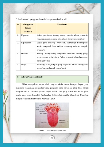 Perhatikan tabel gangguan sistem indera pembau berikut ini !