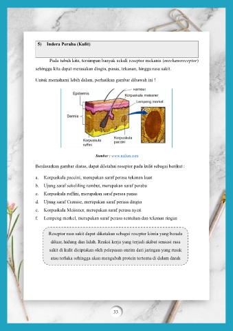 e. Korpuskula Meissner, merupakan saraf perasa nyeri