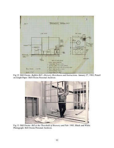 32Fig 12. Bill Owens. Buffalo Bill%u2019s Brewery Brewhouse and Instructions. January 27, 1983, Pencil on Graph Paper. Bill Owens Personal Archives.Fig 13. Bill Owens. Bill at the Threshold of Brewery and Pub. 1983, Black and White Photograph. Bill Owens Personal Archives.