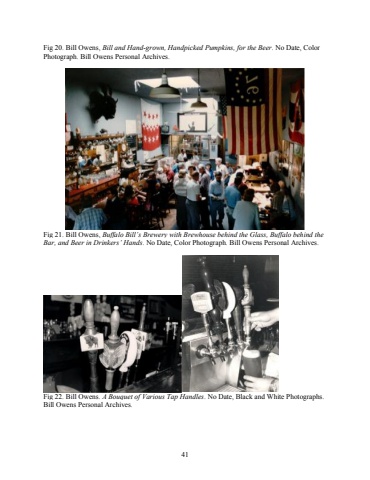 41Fig 20. Bill Owens, Bill and Hand-grown, Handpicked Pumpkins, for the Beer. No Date, Color Photograph. Bill Owens Personal Archives.Fig 21. Bill Owens, Buffalo Bill%u2019s Brewery with Brewhouse behind the Glass, Buffalo behind the Bar, and Beer in Drinkers%u2019 Hands. No Date, Color Photograph. Bill Owens Personal Archives.Fig 22. Bill Owens. A Bouquet of Various Tap Handles. No Date, Black and White Photographs. Bill Owens Personal Archives.
