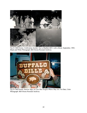 42Fig 23. Bill Owens, Celebrating Another Year of Buffalo Bill%u2019s with a Boom. September, 1985, Black and White Photograph. Bill Owens Personal Archives.Fig 24. Bill Owens, Interior Sign, In Case One Forgets Where They Are. No Date, Color Photograph. Bill Owens Personal Archives.