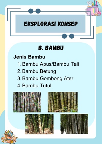 eksplorasi konsep b. bambu Jenis Bambu 1. Bambu Apus/Bambu Tali 2. Bambu Betung 3. Bambu Gombong Ater 4. Bambu Tutul