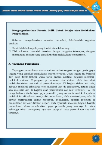 molekul cairan. Tegangan permukaan disebabkan oleh interaksi