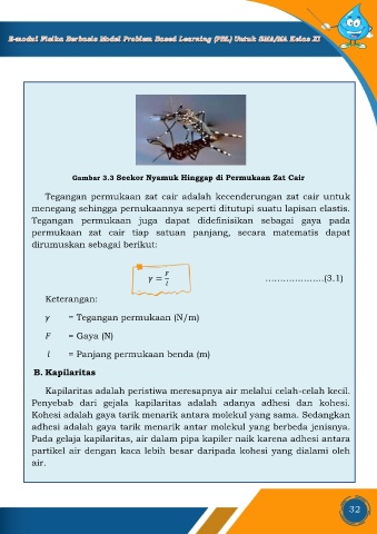 Gambar 3.3 Seekor Nyamuk Hinggap di Permukaan Zat Cair