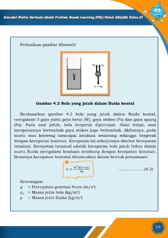 Berdasarkan gambar 4.2 bola yang jatuh dalam fluida kental,