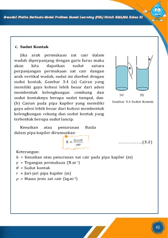 (b) Cairan pada pipa kapiler yang memiliki Gambar 3.4 Sudut Kontak