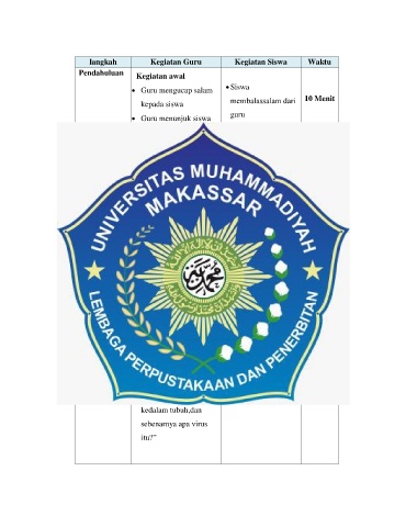 langkah Kegiatan Guru Kegiatan Siswa Waktu
