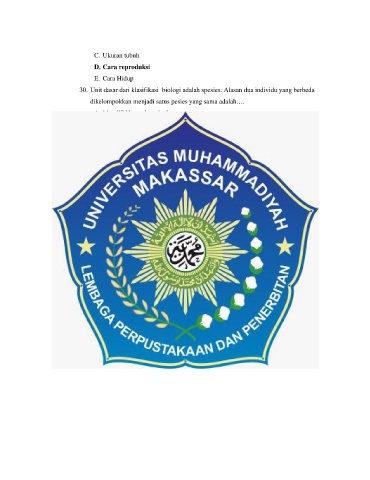 30. Unit dasar dari klasifikasi biologi adalah spesies. Alasan dua individu yang berbeda
