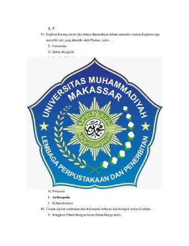 44. Euglena kurang cocok jika hanya dimasukkan dalam animalia, karena Euglena juga