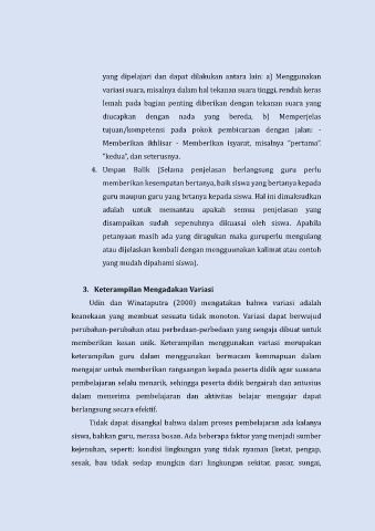 Udin dan Winataputra (2000) mengatakan bahwa variasi adalah