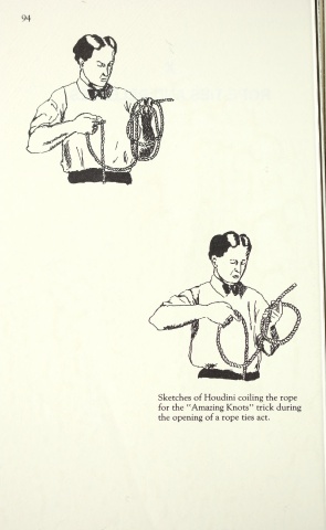 94 Sketches of Houdini coiling the rope for the 'Amazing Knots" trick during * the opening of a rope ties act.