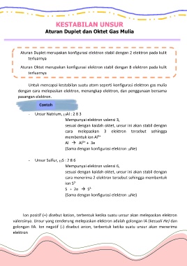 Aturan Duplet merupakan konfigurasi elektron stabil dengan 2 elektron pada kulit