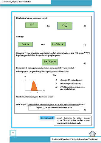 impuls dapat dituliskan dengan bentuk pengintegralan :