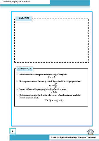 • Hubungan momentum dan impuls yaitu impuls sebanding dengan perubahan