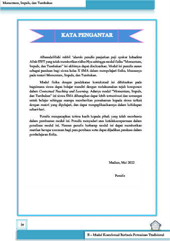 Allah SWT yang telah memberikan ridho-Nya sehingga modul fisika “Momentum,