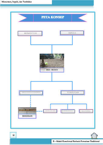 Momentum, Impuls, dan Tumbukan PETA KONSEP MOMENTUM IMPULS BOI - BOIAN HUKUM KEKEKALAN MOMENTUM TUMBUKAN LENTING SEMPURNA LENTING SEBAGIAN TIDAK LENTING NEKERAN vi E – Modul Kontekstual Berbasis Permainan Tradisional