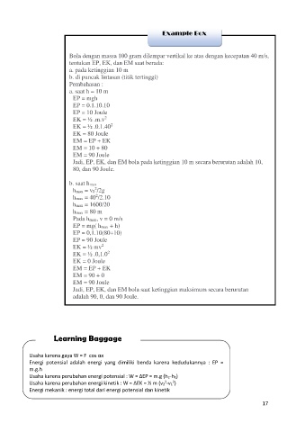 Jadi, EP, EK, dan EM bola pada ketinggian 10 m secara berurutan adalah 10,