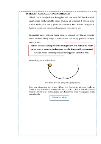 Hukum kekekalan energi mekanik menegaskan “Jika pada suatu benda