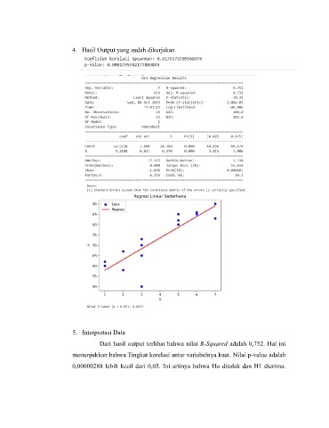 Dari hasil output terlihat bahwa nilai R-Squared adalah 0,752. Hal ini