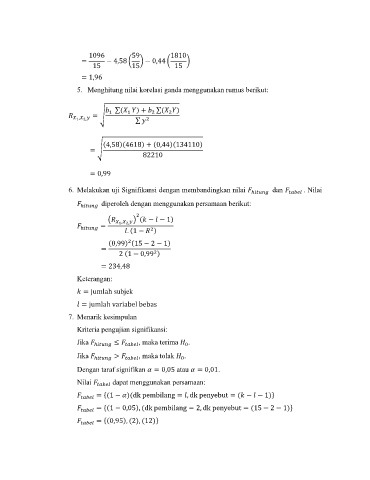 5. Menghitung nilai korelasi ganda menggunakan rumus berikut: