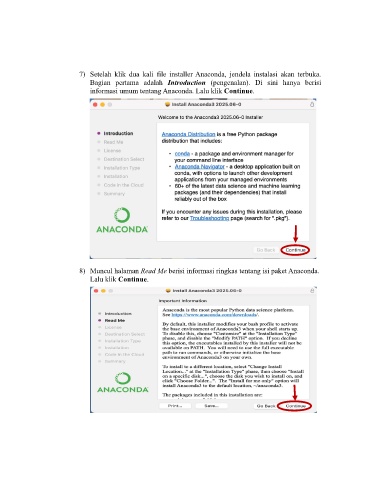 8) Muncul halaman Read Me berisi informasi ringkas tentang isi paket Anaconda.