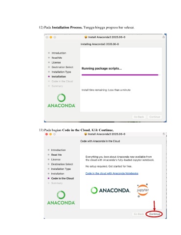 12) Pada Installation Process. Tunggu hingga progress bar selesai. 13) Pada bagian Code in the Cloud. Klik Continue.