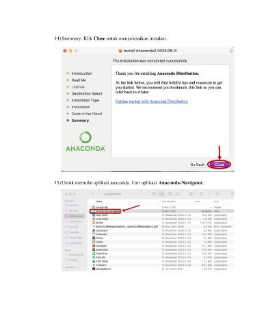 14) Summary. Klik Close untuk menyelesaikan instalasi. 15) Untuk memulai aplikasi anaconda. Cari aplikasi Anaconda-Navigator.