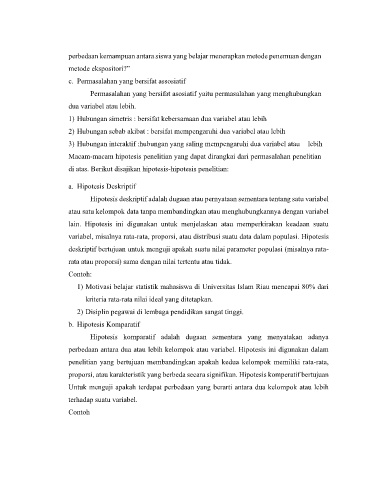 proporsi, atau karakteristik yang berbeda secara signifikan. Hipotesis komperatif bertujuan