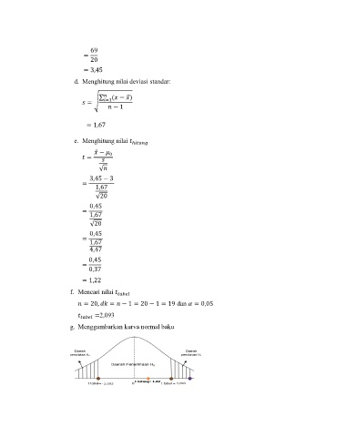 d. Menghitung nilai deviasi standar: