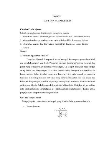1. Memahami analisis perbandingan dua variabel bebas (Uji-t dua sampel bebas)