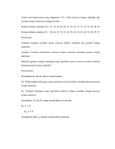Untuk taraf kepercayaan yang digunakan 95%. Data motivasi belajar statistika dan