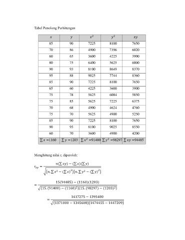 Tabel Penolong Perhitungan
