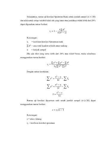 Rumus uji korelasi Spearman rank untuk jumlah sampel ( ≥ 30) dapat