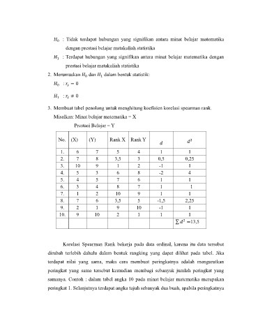 3. Membuat tabel penolong untuk menghitung koefisien korelasi spearman rank.