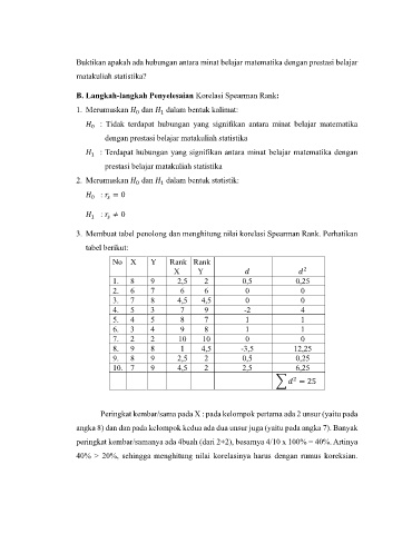 B. Langkah-langkah Penyelesaian Korelasi Spearman Rank: