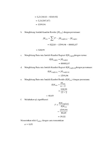 d. Menghitung Rata-rata Jumlah Kuadrat Regresi [ / ] dengan persamaan: