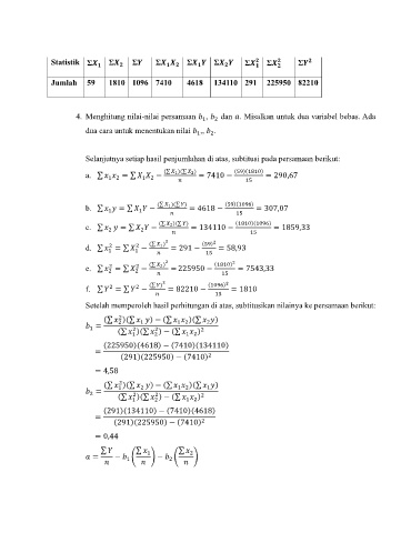 4. Menghitung nilai-nilai persamaan , dan . Misalkan untuk dua variabel bebas. Ada