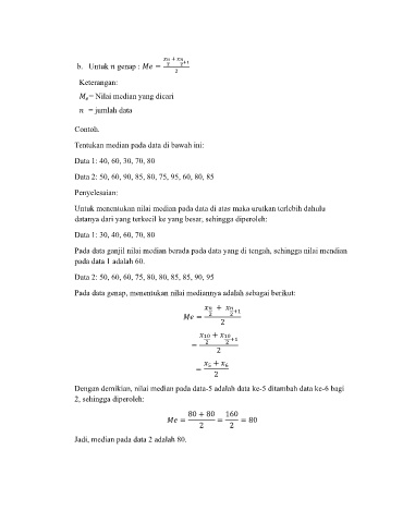 Pada data genap, menentukan nilai mediannya adalah sebagai berikut: