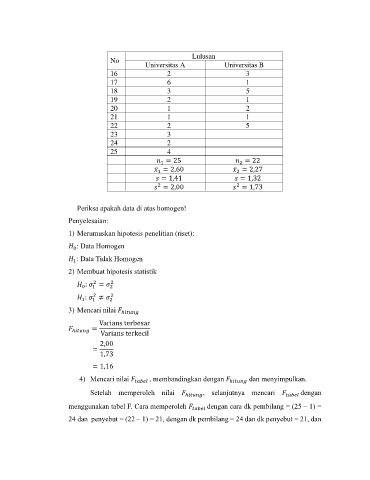 4) Mencari nilai , membandingkan dengan ℎ dan menyimpulkan.